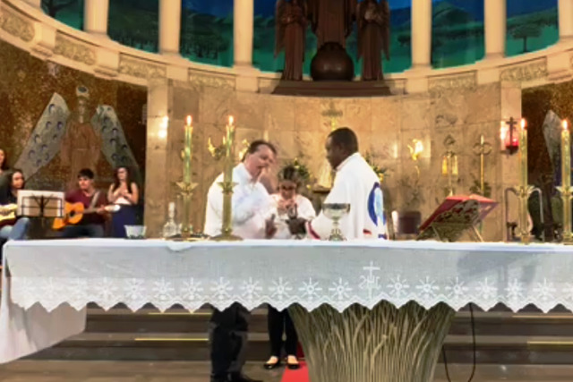Celebração presidida pelo Pe. Nathan, concelebrada pelo Pe. Freddy, Servida pelos Ministros Extraordinário da Sagrada Comunhão Antônio e Adriana e musicada por Simone, André, Ellen e Mary, do grupo jovem da paróquia.